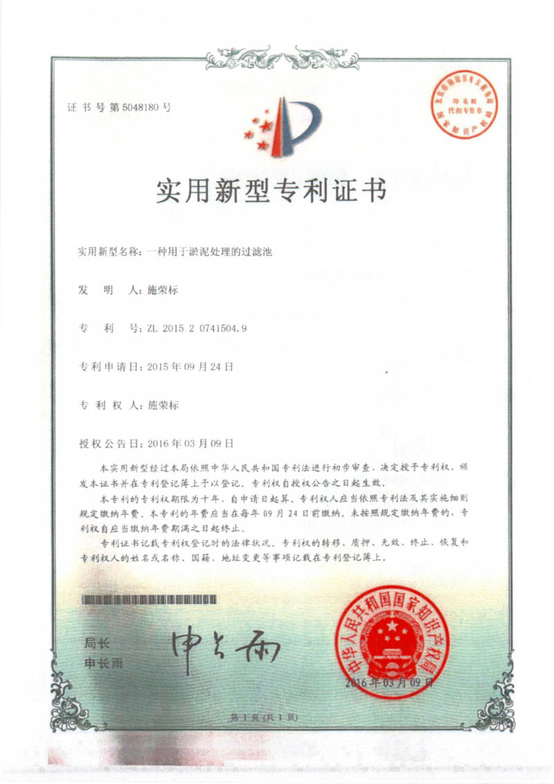實用新型專利證書